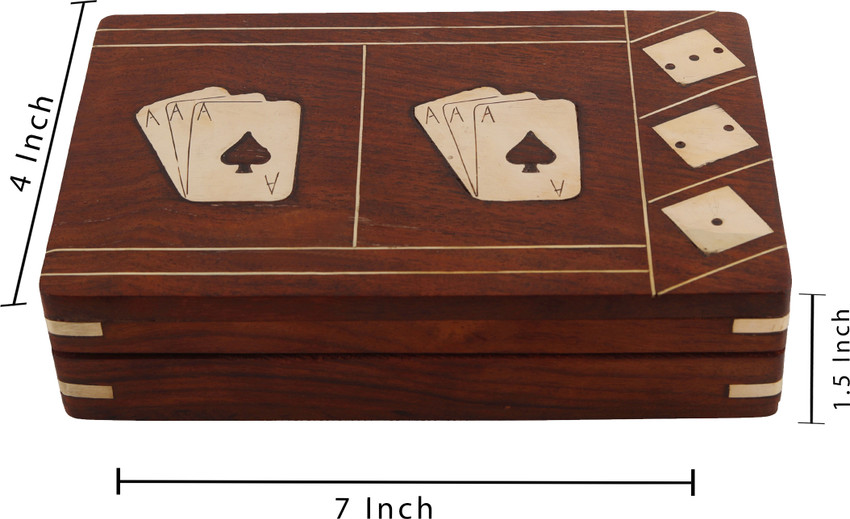 Shriji Crafts Playings Cards Set Of 2 In Handmade Wooden Storage Box Case Holder With 5 Dice Playings Cards Set Of 2 In Handmade Wooden Storage Box Case Holder With 5